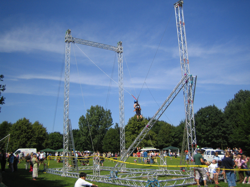 Eine spektakuläre Aktion und ein toller Blickfang für Ihre Veranstaltung. Der Teilnehmende hängt wie ein Pendel an einem Stahlseil, wird auf eine Seite gezogen und entscheidet selber auf welcher Höhe er die Auslöseleine zieht. Nach einem Moment des freien Falls pendelt der Teilnehmende knapp über dem Boden wie auf einer gigantischen Schaukel mit ca. 10 Meter Radius. Am unteren Ende sichert unser entsprechend geschultes Personal Maximalbeschleunigung von ca. 3 G.